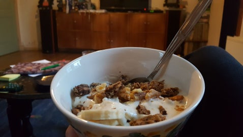 Vandaag begin ik de dag wat eerder dan gister, ik ben namelijk niet meer vrij en ik moet zelfs voor een belangrijke toets naar school. Dit betekent: een goed maar snel ontbijt en lunch om mee te nemen.